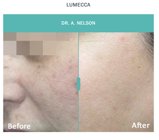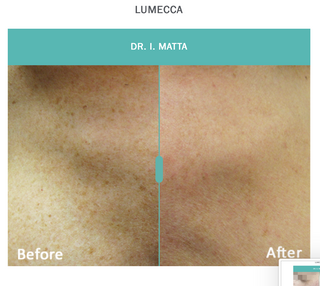 Lumecca uses INTENSE PULSED LIGHT THERAPY to target certain colour in the skin. When the skin is heated, your body gets rid of the unwanted cells, and that gets rid of the thing you're being treated for.